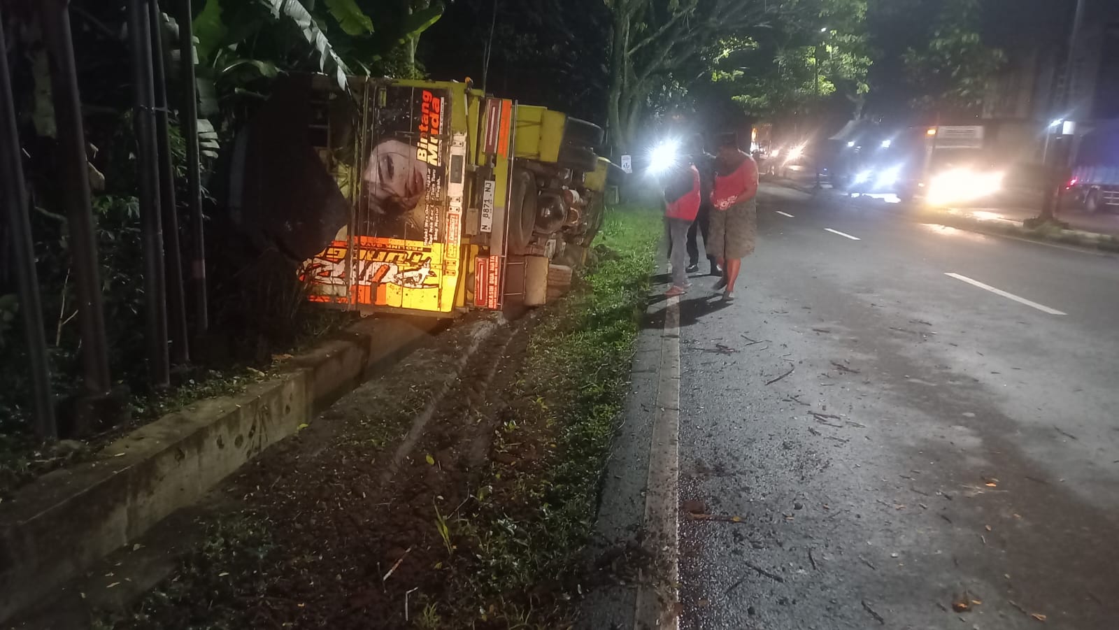 “Berdasarkan hasil olah TKP dan keterangan saksi, pengemudi diduga mencoba mendahului dari sisi kiri. Namun, ruang yang tersedia tidak cukup sehingga kendaraan kehilangan kendali dan mengalami kecelakaan tunggal,” ujar Henri.